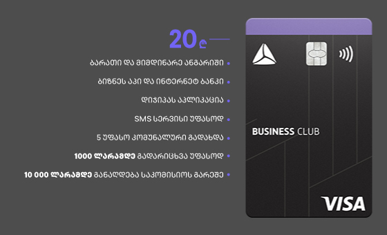 საბანკო პროდუქტების ნაკრების გამოწერით, ბიზნესები ავტომატურად ხდებიან თიბისის ბიზნეს კლუბის წევრი, რაც მათ დამატებით უპირატესობებს ანიჭებს და შესაძლებლობა აქვთ ისარგებლონ: