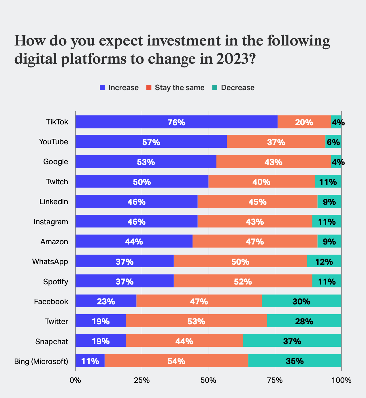 ზოგადად დიდი ძვრებია მედიის ბაზარზე, იმის მიუხედავად, რომ ალფაბეტი (გუგლის დედა კომპანია) და მეტა კვლავ დაახლოებით $324.3 ბილიონ დოლარს გამოიმუშავებენ რეკლამიდან (2022, WARC media forecasts), მათი დუოპოლია მედიის კუთხით ნელ-ნელა ჩელენჯდება და ბრენდებს მეტი არჩევანი აქვთ ციფრულ სივრცეში, მიდის ციფრულ სარეკლამო სივრცეში ბალანსების გადანაწილება. მედიის ბაზარზე ახალი კონკურენტები გამოჩნდნენ ნეტფლიქსის, spotify-ს და ამაზონის სახით, მათ უკვე იმხელა და ისეთი ლოიალური მომხმარებელთა ბაზა ჰყავთ, რომ უკვე დაიწყეს სარეკლამო მონეტიზაციაზე ფიქრი და ბრენდებს თავიანთ აუდიტორიაზე რეკლამირების საშუალებას მისცემენ. მსგავს ჩანაფიქრს აანონსებს Apple-იც.