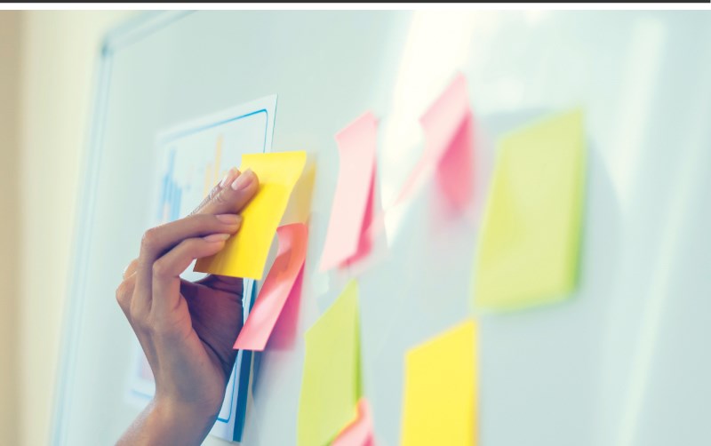 - აიღე სტიკერის ფურცლები (ჩვეულებრივი ყვითელი სტიკერის ფურცლები) და მარცენა ზედა კუთხეში დააწერე: როგორ შეგვიძლია ჩვენ?